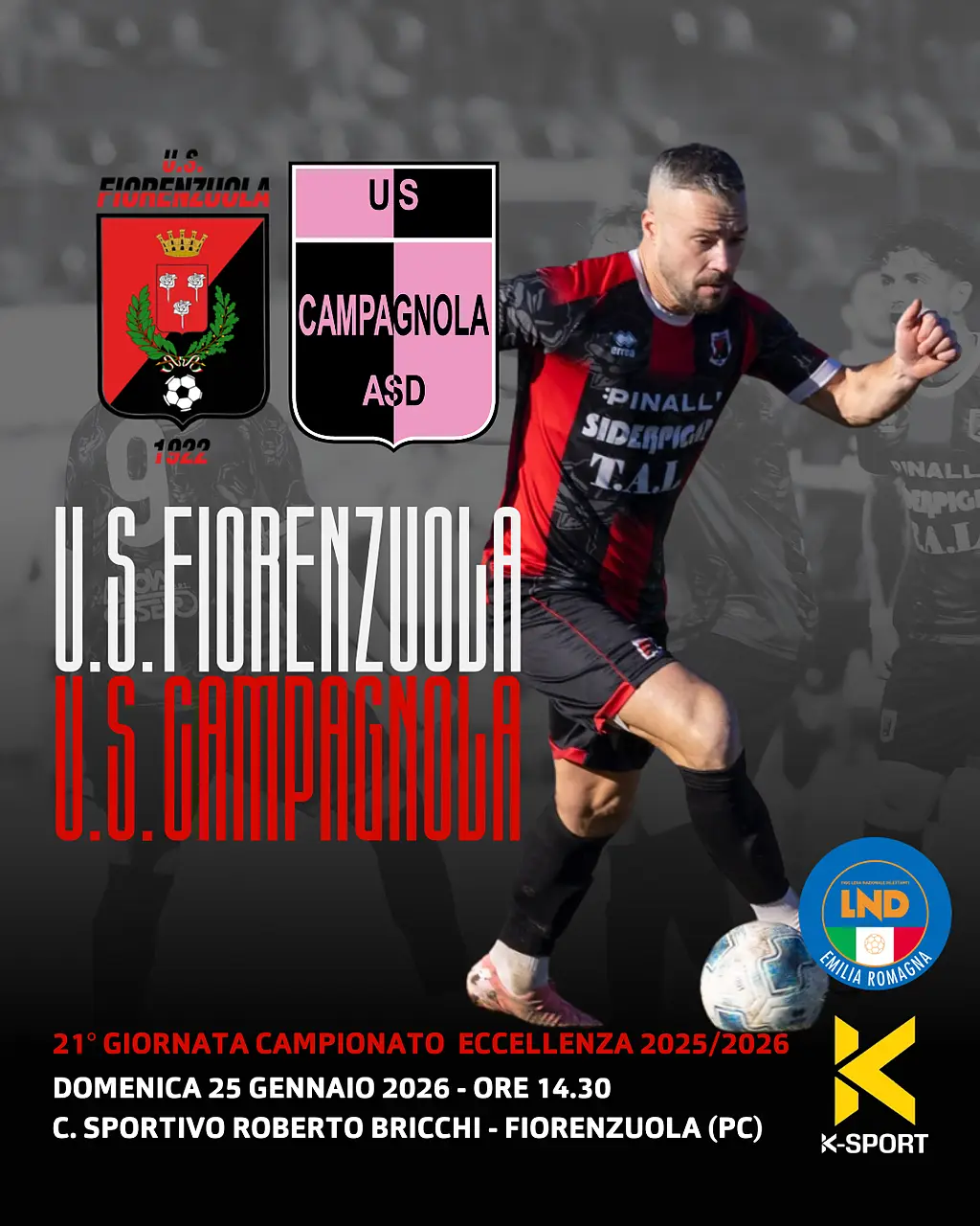 U.S. Fiorenzuola 1922 informa che la gara valevole per la 21ª Giornata del Campionato di Eccellenza Emilia-Romagna 2025/2026, in programma domenica 25 gennaio 2026 alle ore 14.30, si disputerà presso il Centro Sportivo “Roberto Bricchi”, in Via Barani – Fiorenzuola d’Arda (PC).