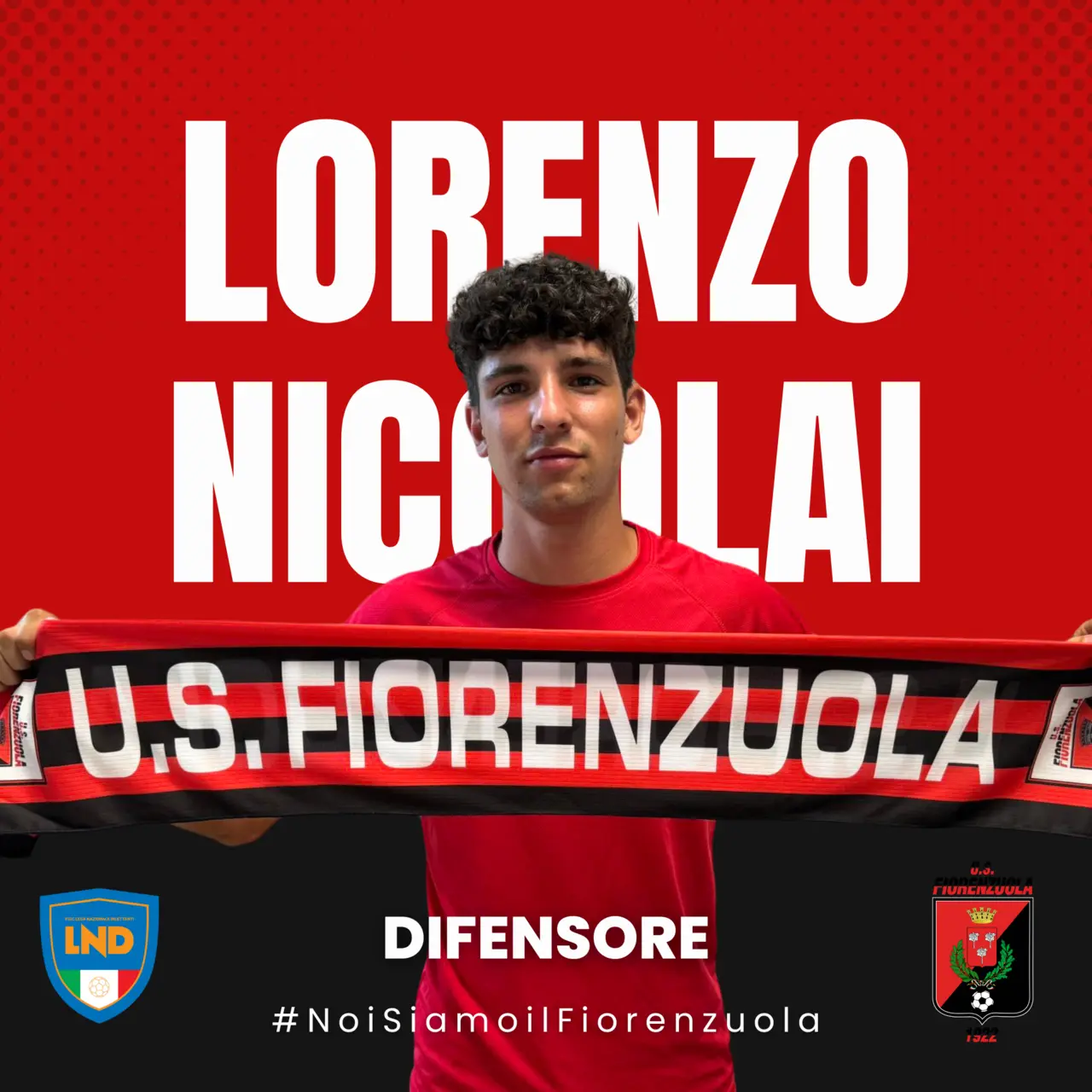 A Lorenzo il benvenuto in rossonero da parte di tutta la società U.S. Fiorenzuola 1922.
